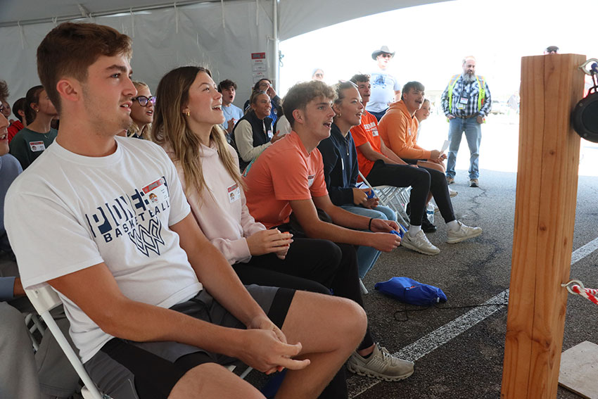 Waverly students cheer on their classmate during Smackdown Science. Students from Pike, Scioto, Ross, Jackson, Adams, and Greenup counties compete for the highest score to earn bragging rights, and a trophy, each day.